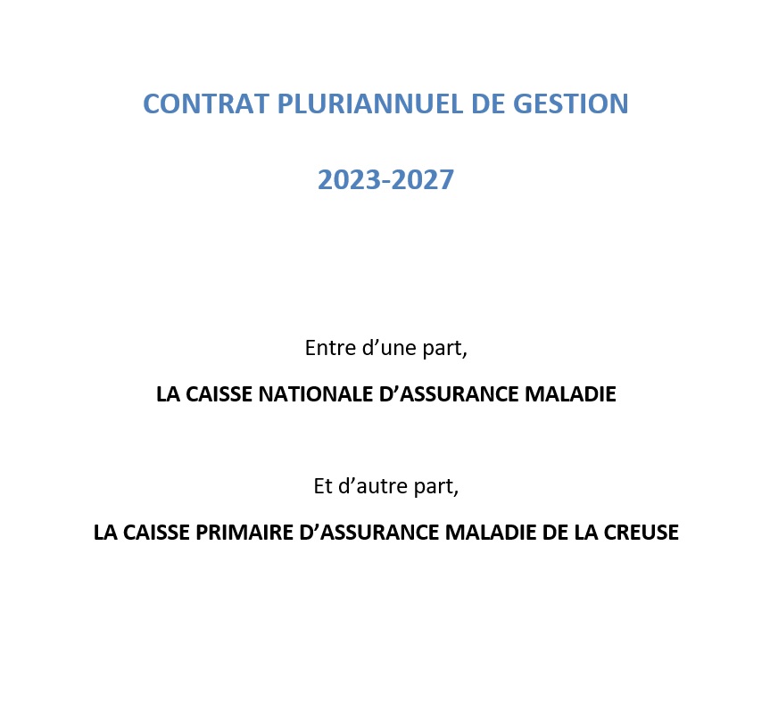 La déclinaison locale de la COG (signée entre la CNAM et l’Etat en juillet 2023) s’est concrétisée en décembre 2023 par la signature du contrat pluriannuel de gestion (CPG) entre la CNAM et la CPAM de la Creuse pour la période 2023-2027.