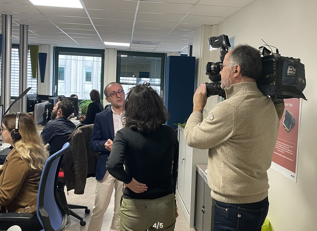 Une équipe de TF1 est venue dans nos locaux faire un reportage sur la mission confiée par la CNAM pour mieux accompagner les personnes à ouvrir leurs droits à la Complémentaire Santé Solidaire : une campagne d'appels sortants ciblée efficace.