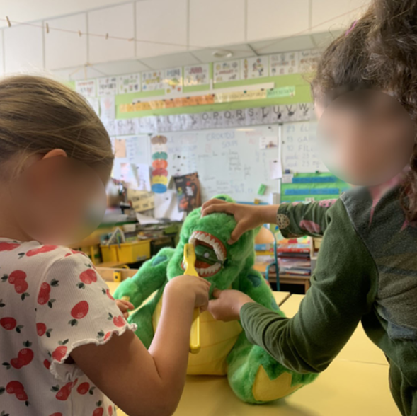 Crocky le crocodile et les ambassadeurs prévention sont allés à la rencontre des élèves de grande section de maternelle pour les sensibiliser à l’hygiène buccodentaire !