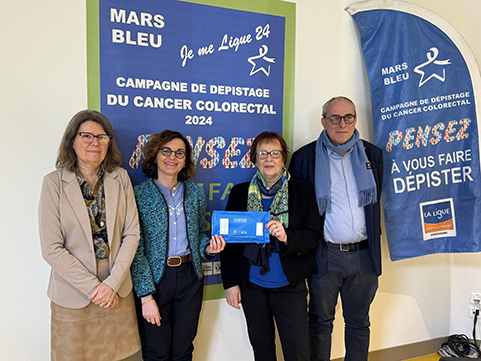 Ce fut l’occasion de parler des enjeux du dépistage organisé du cancer colorectal en Dordogne et de présenter, le nouveau dispositif d’invitation, d’obtention du kit et de réception des résultats, les actions d’ « aller vers » programmées sur tout le territoire par la Ligue contre le cancer et par la CPAM, ainsi que le plateau d’appels Aller vers prévention (AVP). -