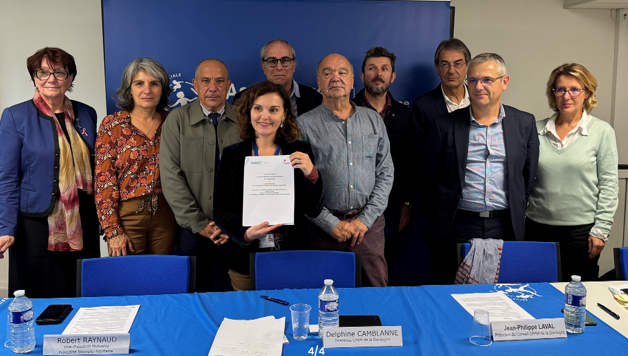 À l’occasion de la signature de nouvelles conventions de partenariat pour l’accès aux droits et aux soins incluant un volet handicap, la CPAM de la Dordogne a organisé une conférence de presse le 9 octobre, au cours de laquelle sont intervenus Marie-Lise MARSAT pour la MDPH, Agnès VALET-NARJOU pour les Restos du cœur, Robert RAYNAUD pour la Mutualité Française Nouvelle-Aquitaine, Delphine CAMBLANNE, Jean-Philippe LAVAL et Iwona TROPINI pour la CPAM.