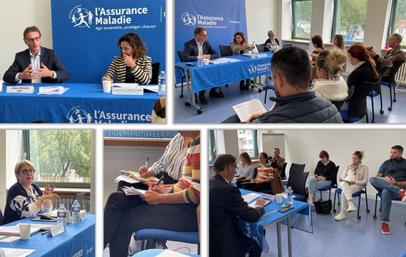 La presse a été conviée pour une conférence de presse tenue par Gaël CREIGNOU Directeur Ressources CPAM, Laurent LEMBEYE, Responsable département Ressources et Sécurités CAF et Mesdames BLUZAT, Directrice URSSAF et AKOGBEKAN, Directrice France Travail, pour une découverte des métiers de la CPAM.